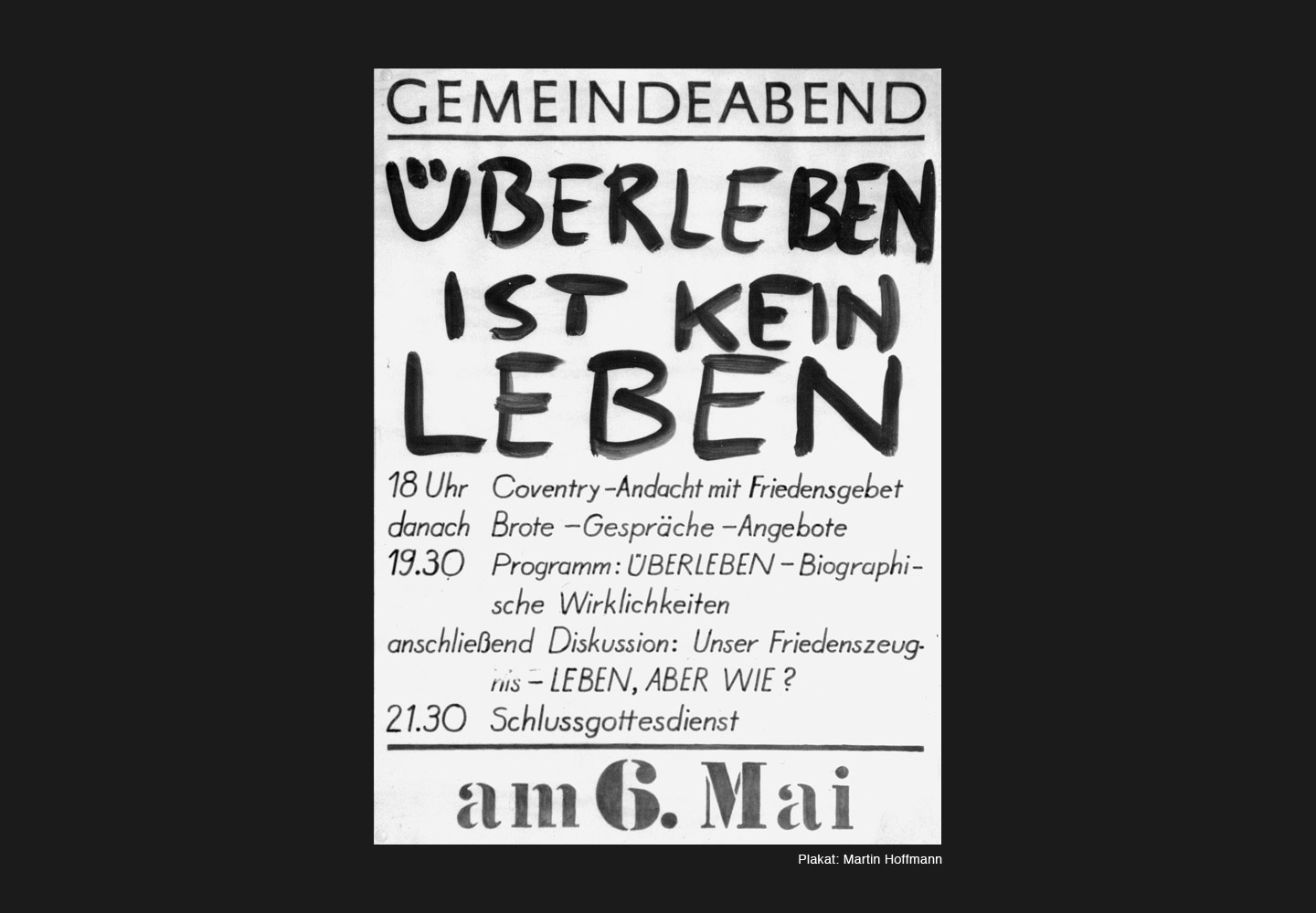 ANLASS Anfang der 80er Jahre hatte die atomare Hochrüstung in Europa ihren traurigen Höhepunkt erreicht. Die Fronten des Kalten Krieges hatten sich verschärft. In Westdeutschland reagierten Menschen auf den NATO-Doppelbeschluss vom Dezember 1979, indem sie sich der Friedensbewegung anschlossen. Höhepunkt war die Friedensdemonstration im Bonner Hofgarten am 10. Oktober 1981. Zu fast 300.000 Demonstranten sprachen u.a. die Theologen Heinrich Albertz und Kurt Scharf sowie der Literatur-Nobelpreisträger Heinrich Böll.